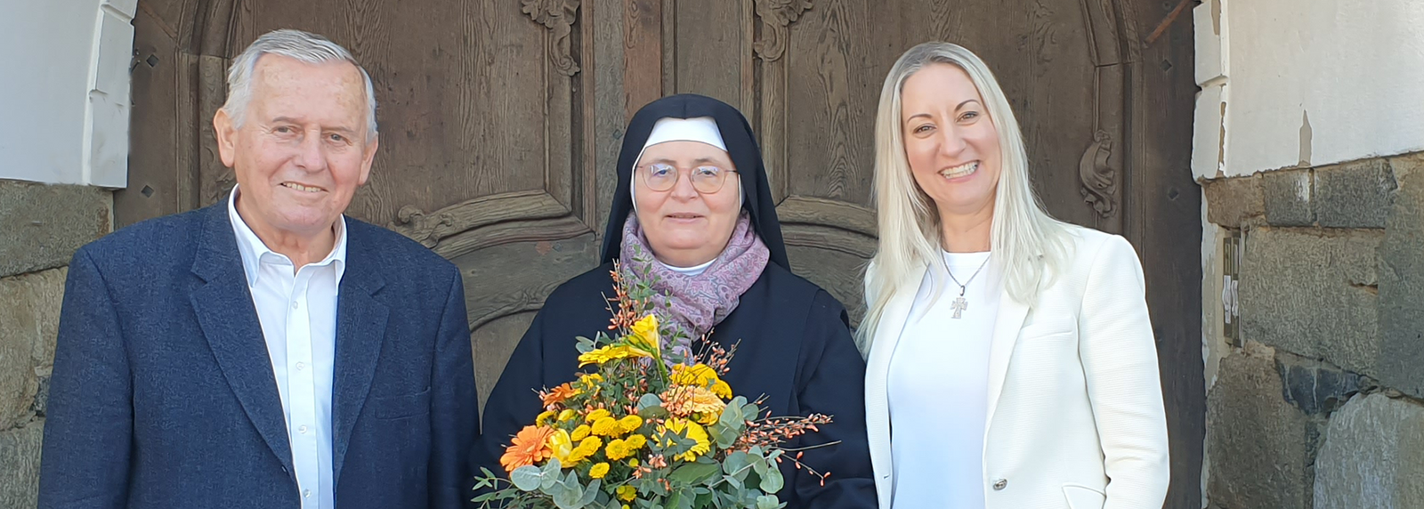 Im Rahmen einer kleinen Feier im Schlosskeller des historischen Schlosses Ortenburg bedankten sich die Vorstandsvorsitzende des Mutter-Kind-Hilfswerkes Nadine Espey und Bezirksrat a.D. Horst Wipplinger als Gründungsmitglied und Mitglied des Präsidiums des Mutter-Kind-Hilfswerkes recht herzlich bei Generalpriorin Schwester Helene Binder (Kloster der Benediktinerinnen der Anbetung in Neustift/Ortenburg) für die Übernahme des Amtes als Präsidentin des gemeinnützigen Vereins.